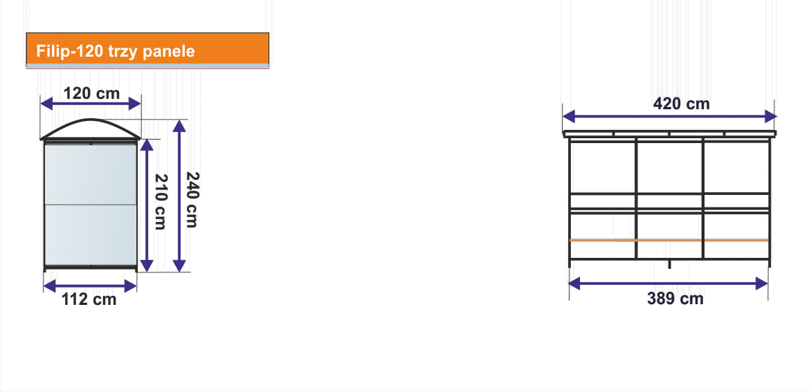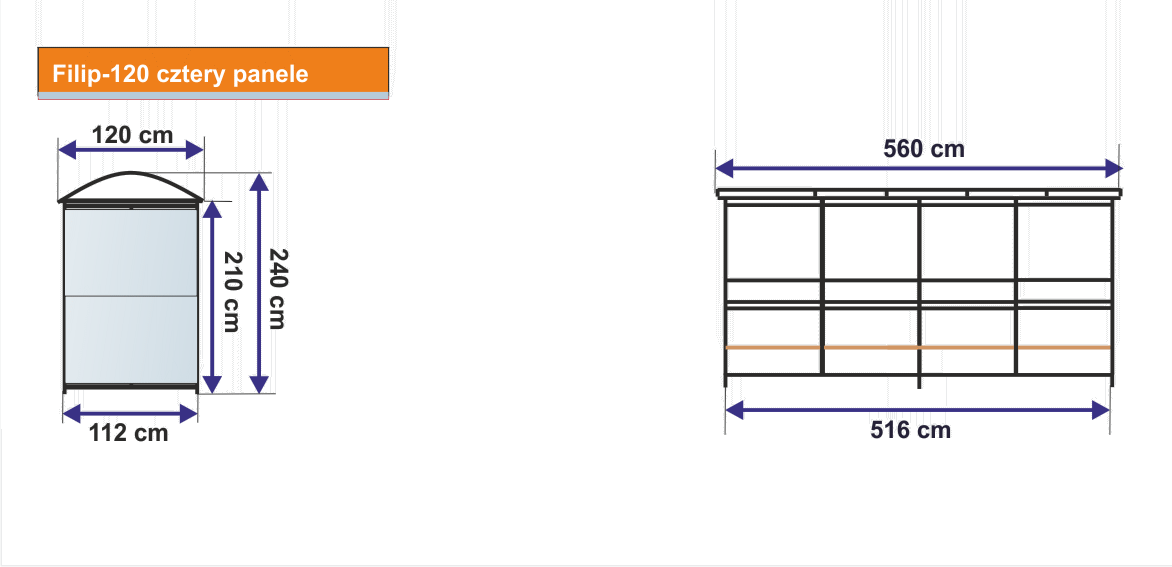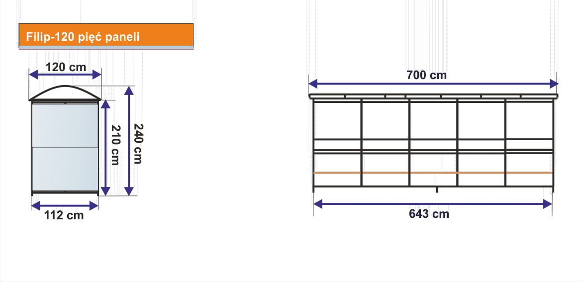 Wiata przystankowa wykonana jest z profili stalowych ocynkowanych i malowany na jeden z kolorów używanych standartowo w naszej firmie. Zadaszenie wiaty wykonane jest z poliwęglanu komorowego 6 mm .Przeszklenie wiaty wykonano z szyby hartowanej 5 mm. Wiata może mieć od 2 do 6 paneli które wykonujemy w 2 różnych wymiarach. Ławka wykonana jest z drewna sosnowego pokrytego lakierobejcą.