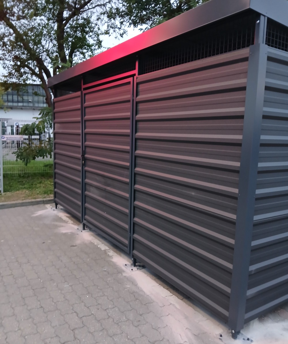 Model 04 to solidna wiata oparta na konstrukcji z ocynkowanych profili stalowych. Ściany wykonane z blachy trapezowej zapewniają wysoką wytrzymałość oraz typowo przemysłowy charakter obiektu. Dach również pokryty blachą trapezową, z możliwością dowolnego kierunku spadku, co pozwala na łatwe dopasowanie do warunków zabudowy.
