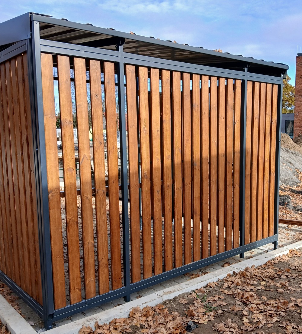 Model 08 to solidna wiata wykonana na konstrukcji z ocynkowanych profili stalowych. Ściany z lakierowanych desek sosnowych nadają jej naturalny, estetyczny wygląd oraz zapewniają trwałość i przyjemny wizualnie charakter zabudowy. Dach pokryty blachą trapezową, z możliwością dowolnego kierunku spadku, co pozwala na łatwe dopasowanie do warunków lokalizacji.